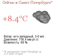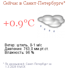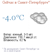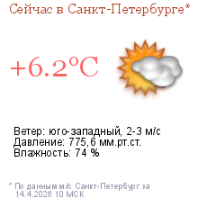 Метеорологические прогнозыПрогноз погоды по Санкт-Петербургу на трое суток Прогноз погоды по Ленинградской области на трое суток Прогноз погоды по Санкт-Петербургу на неделю | |