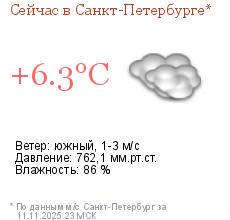 Метеорологические прогнозыПрогноз погоды по Санкт-Петербургу на трое суток Прогноз погоды по Ленинградской области на трое суток Прогноз погоды по Санкт-Петербургу на неделю Прогноз неблагоприятных метеорологических условий | В ближайшие сутки метеорологических условий, способствующих загрязнению атмосферного воздуха, не ожидается. |
