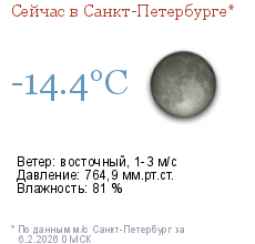 Метеорологические прогнозыПрогноз погоды по Санкт-Петербургу на трое суток Прогноз погоды по Ленинградской области на трое суток Прогноз погоды по Санкт-Петербургу на неделю Прогноз неблагоприятных метеорологических условий | В Санкт-Петербурге и Ленинградской области в течение суток 6 и 7 февраля 2026 года сохранятся неблагоприятные метеоусловия, способствующие незначительному скоплению загрязняющих веществ в атмосферном воздухе. |