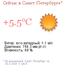 Метеорологические прогнозыПрогноз погоды по Санкт-Петербургу на трое суток Прогноз погоды по Ленинградской области на трое суток Прогноз погоды по Санкт-Петербургу на неделю Прогноз неблагоприятных метеорологических условий | В Псковской области днем 28 марта и ночью 29 марта 2026 г., в Калининградской области вечером 28 марта, ночью и утром 29 марта 2026 г., в г. Санкт-Петербурге, Ленинградской и Новгородской областях днем 28 марта, в течение суток 29 марта и ночью 30 марта 2026 г. ожидаются неблагоприятные метеорологические условия, способствующие загрязнению атмосферного воздуха.
