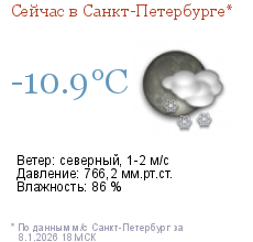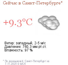 Метеорологические прогнозыПрогноз погоды по Санкт-Петербургу на трое суток Прогноз погоды по Ленинградской области на трое суток Прогноз погоды по Санкт-Петербургу на неделю | |
