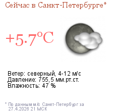 В этот день 27 апреля в Санкт-Петербурге: абсолютный минимум температуры воздуха: -7,4 гр. наблюдалс...