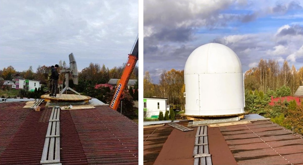 Монтаж и установка АРНВК «Вихрь» на крыше здания аэрологической станции Воейково.