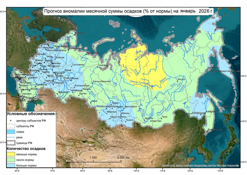 Месячное количество осадков предполагается на севере Красноярского края и в западных районах Якутии меньше среднего многолетнего количества; на юге Сибирского федерального округа, в центральных и южных районах Хабаровского края, в Камчатском крае и на востоке Чукотского автономного округа – больше; на остальной территории – около нормы.