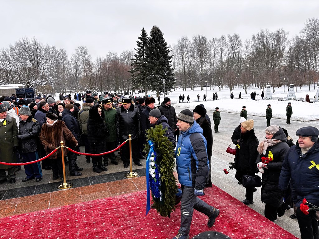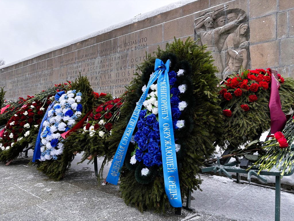 Представители Росгидромета на торжественно-траурной церемонии возложения венков и цветов к монументу «Мать-Родина» на Пискарёвском мемориальном кладбище 27 января 2026 года