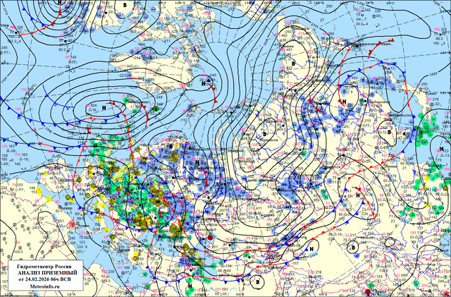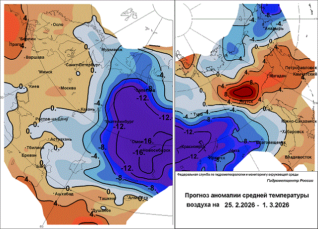 Обзор атмосферных процессов и наиболее важных явлений погоды, ожидаемых с 25 по 27 февраля 2026 г.